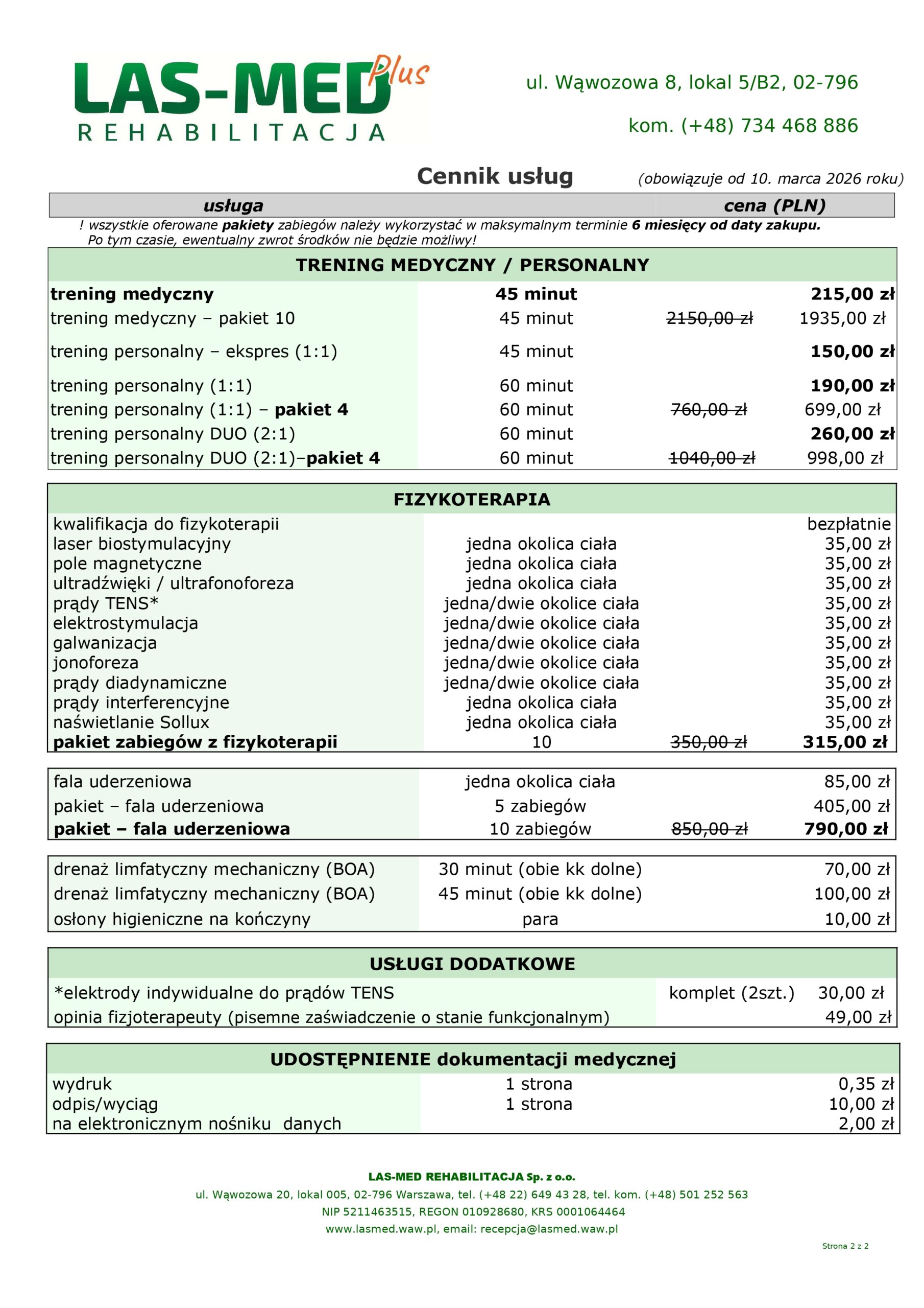 Zachęcamy do wykupienia pakietów (serii 10) zabiegów z zakresu fizykoterapii i fali uderzeniowej. Obowiązuje wówczas niższa – atrakcyjna cena. Szczegóły w naszym Cenniku!
